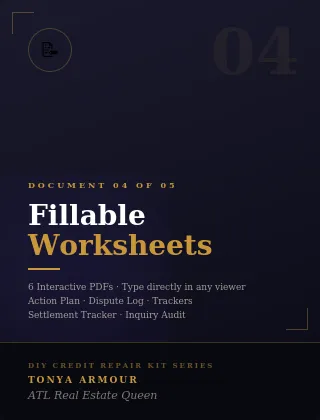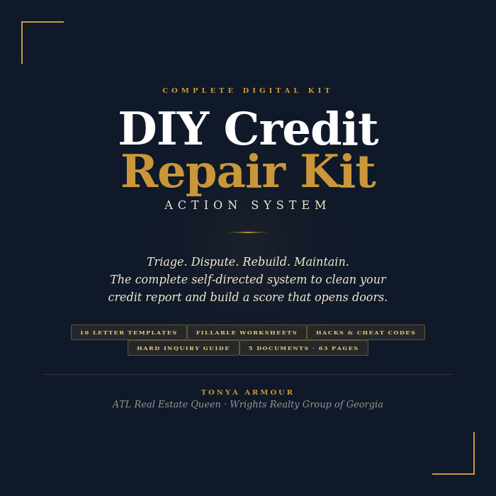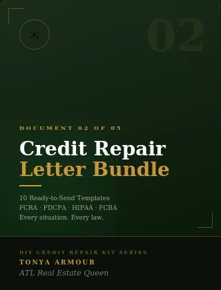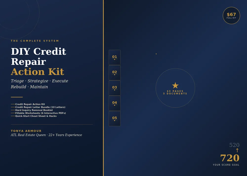 Five documents. 63 pages. 10 letters ready to mail. Built by a real estate broker who has spent 22 years watching credit be the one thing that stands between people and their financial goals.
